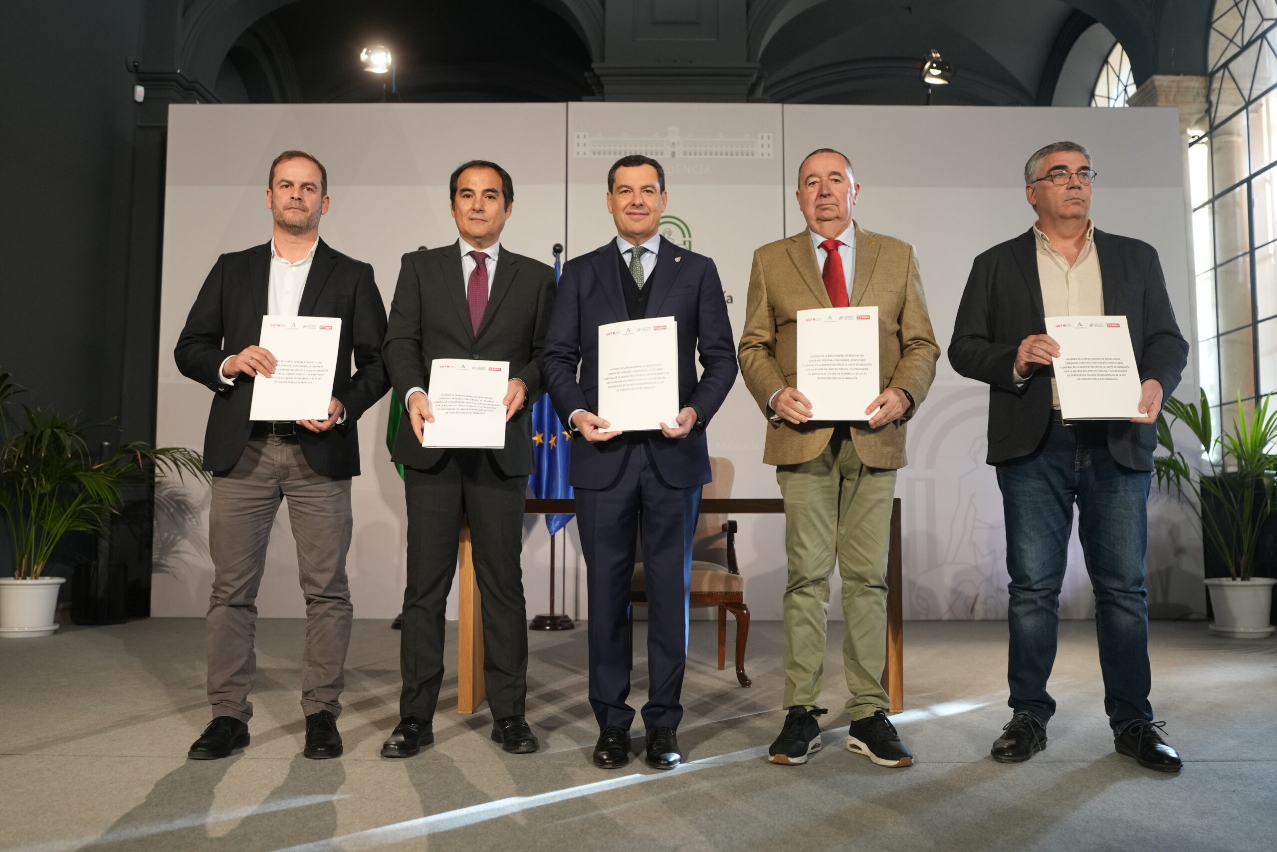 Moreno preside la firma de un acuerdo "histórico" entre el Gobierno andaluz y la unanimidad de las organizaciones sindicales con medidas que buscan transformar la administración