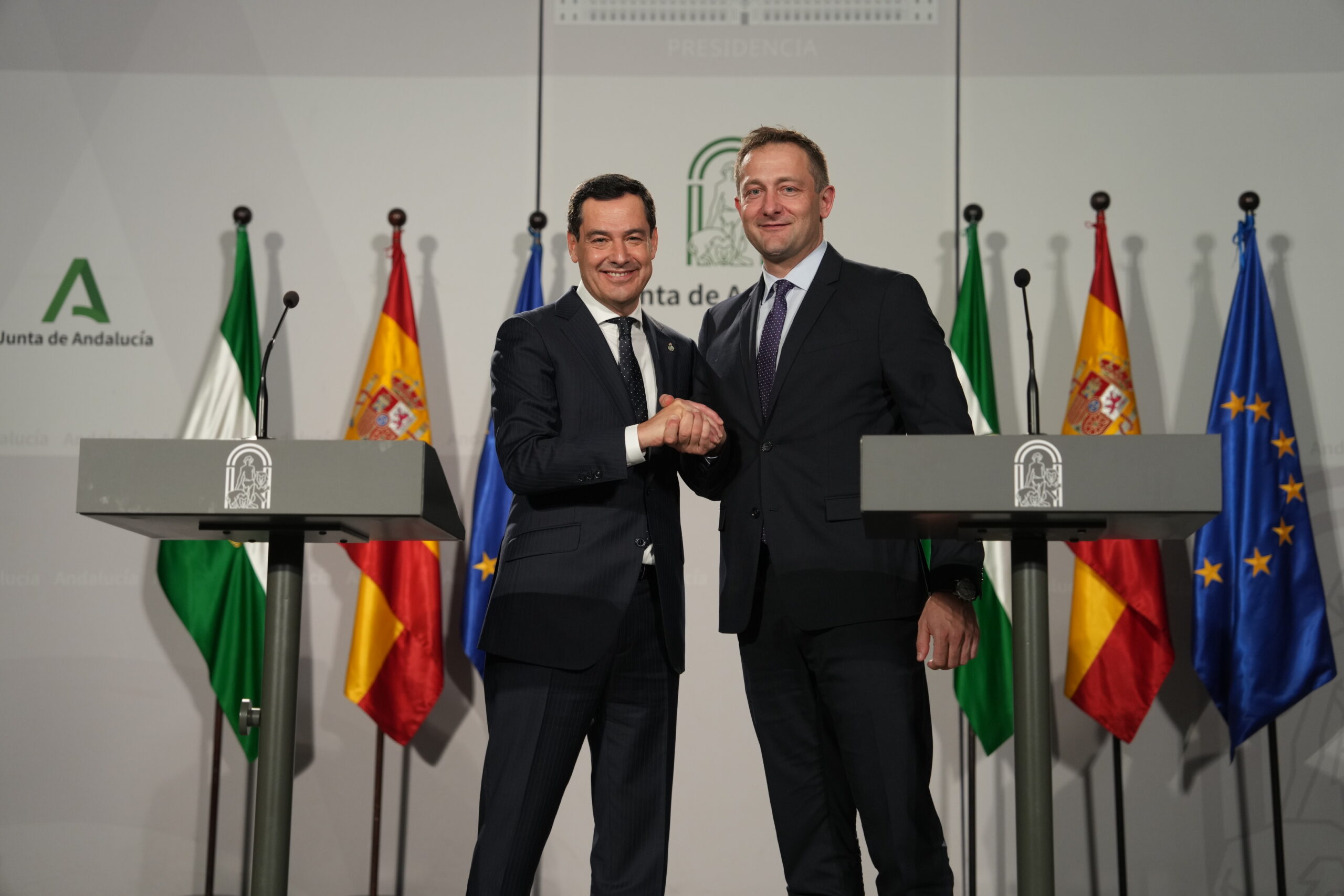 Durante su encuentro, Moreno y Hansen han analizado además asuntos como el de los acuerdos de libre comercio. En concreto, la necesidad de que estén bien regulados y ajustados a la normativa europea para que regiones como Andalucía puedan abrir nuevos mercados y reforzar su competitividad en el exterior.
