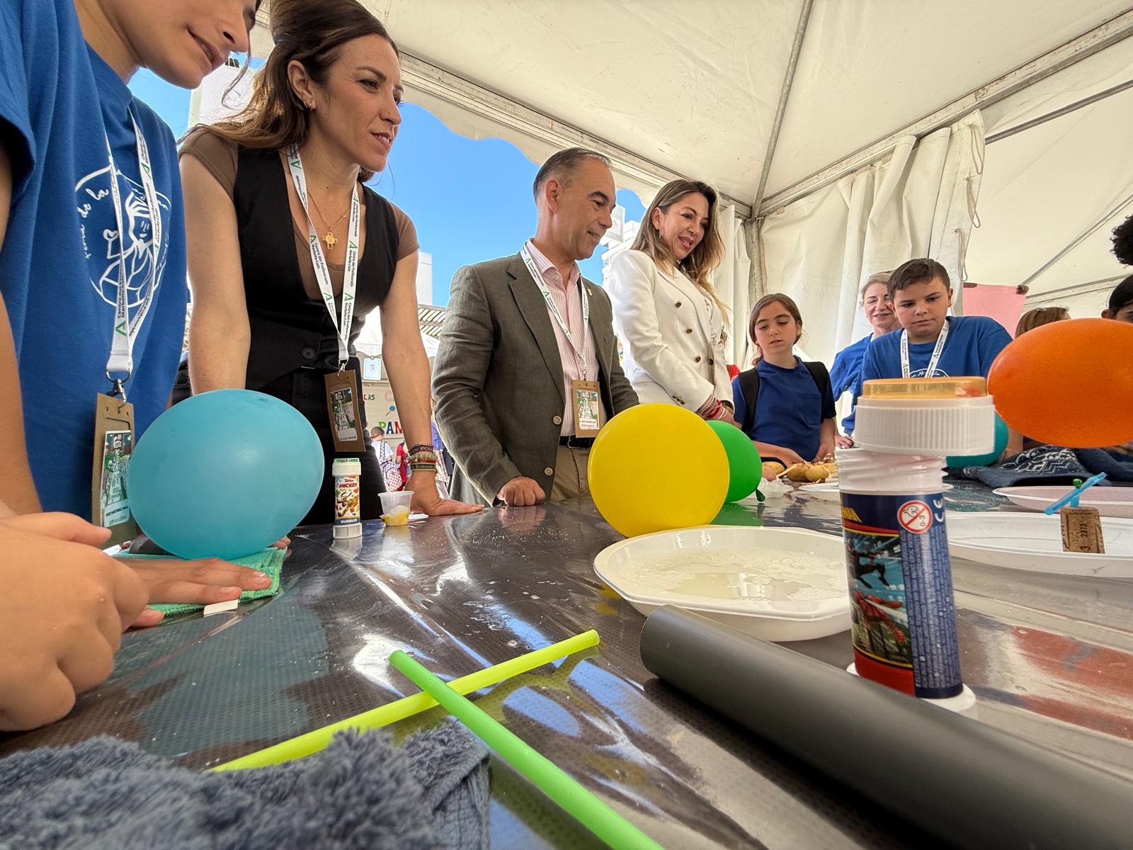 El alcalde de Benalmádena, Juan Antonio Lara, acompañado de la edil de Educación, María Luisa Robles, y la directora del CEP-Marbella Coín, Rosa María Arcos, ha visitado la XVII edición de la Feria de la Ciencia Ibn Al-Baytar, que se celebra en la Plaza Adolfo Suárez (Pueblosol), en Arroyo de la Miel, siendo un año más uno de los principales encuentros de la comunidad educativa de la provincia en pro de la divulgación científica.