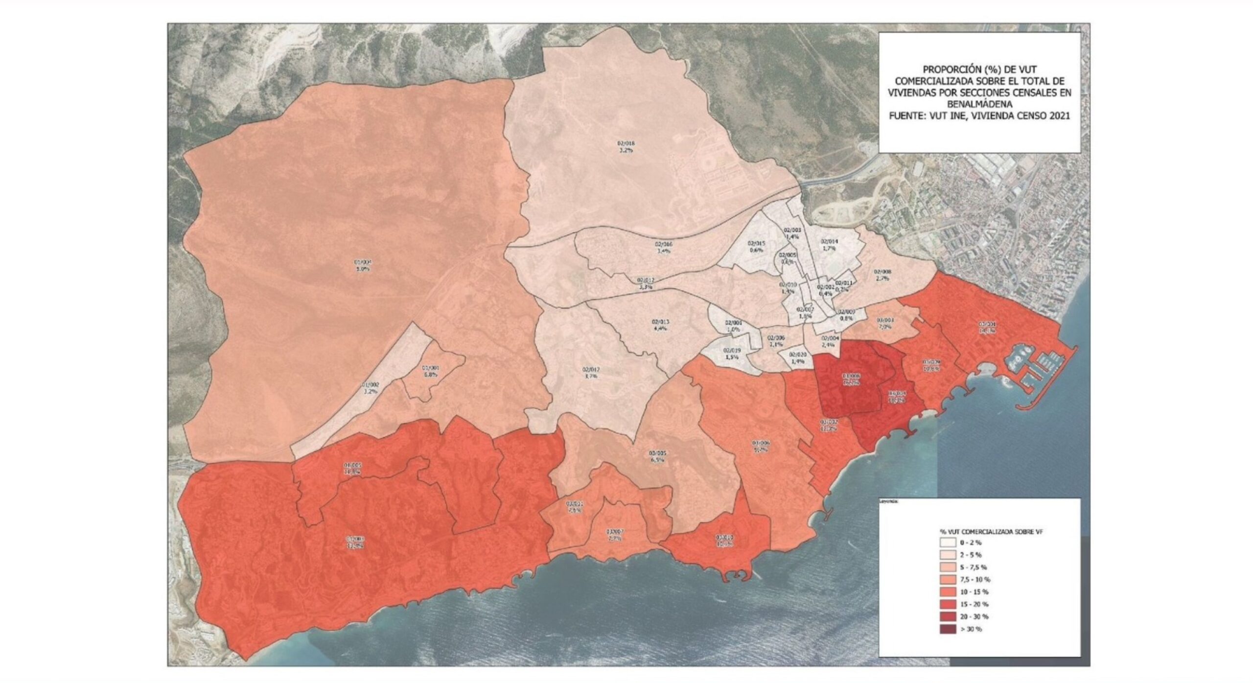 Dicho estudio establece además recomendaciones sobre el porcentaje óptimo de viviendas turísticas por distrito. En el distrito del Pueblo recomienda que el porcentaje esté entre el 5 y el 8 por ciento y actualmente está en el 8 por ciento. En el distrito de Arroyo de la Miel recomienda que el porcentaje esté en el 5% y actualmente está en el 4%. Y en el distrito de la Costa recomienda que el porcentaje esté en el 16% por ciento y actualmente está en el 16,6%.