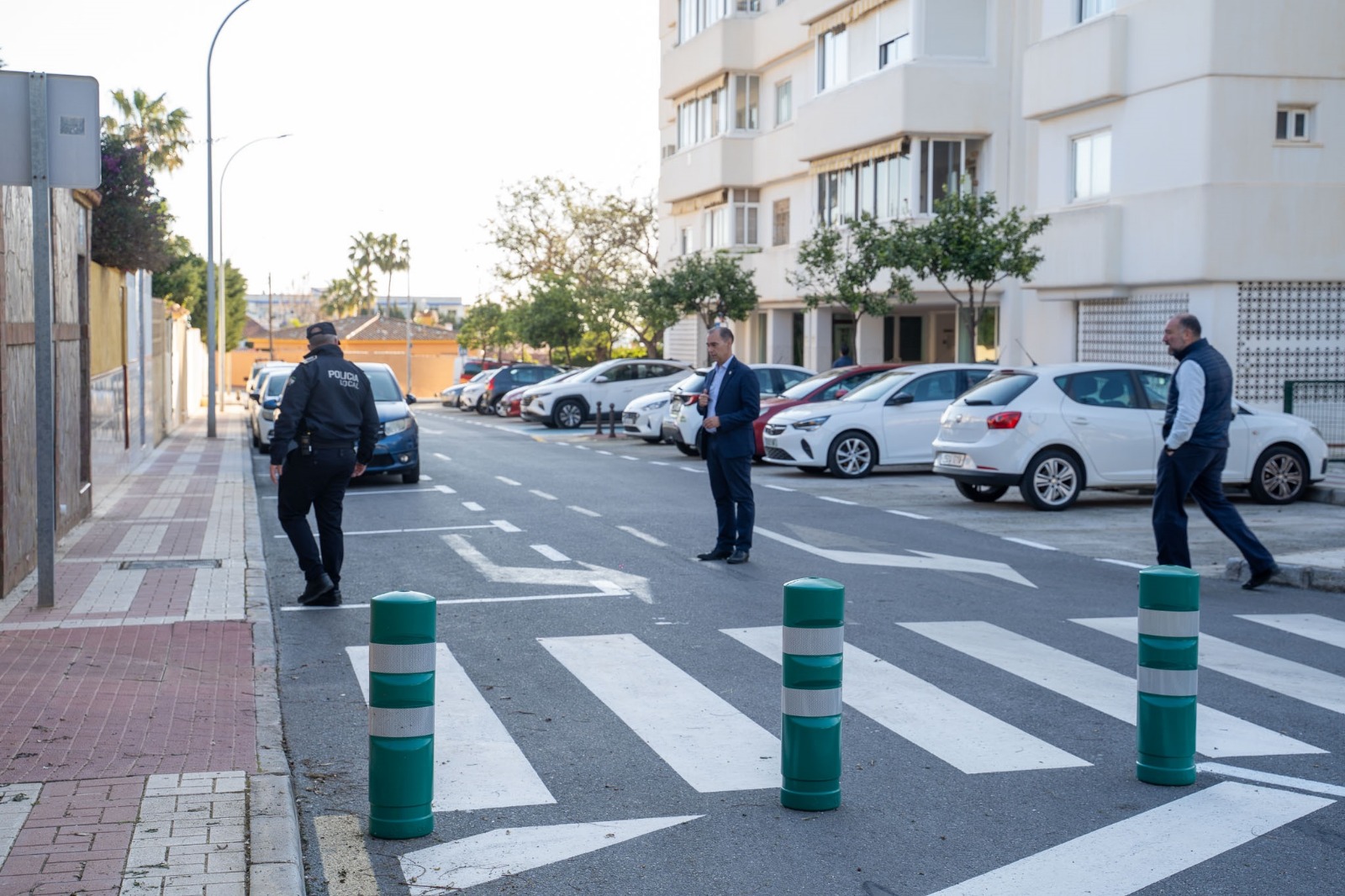 El alcalde de Benalmádena, Juan Antonio Lara, ha visitado el entorno del colegio El Tomillar acompañado del edil de Movilidad, Raúl Campos y del jefe de la Policía Local, Juan Carlos Merchán, para comprobar de primera mano los resultados de los cambios realizados en el tráfico y en la zona de estacionamientos, llevados a cabo por la Policía Local en colaboración con el área de Movilidad, con el objetivo último de reforzar la seguridad de los niños y de sus familias.