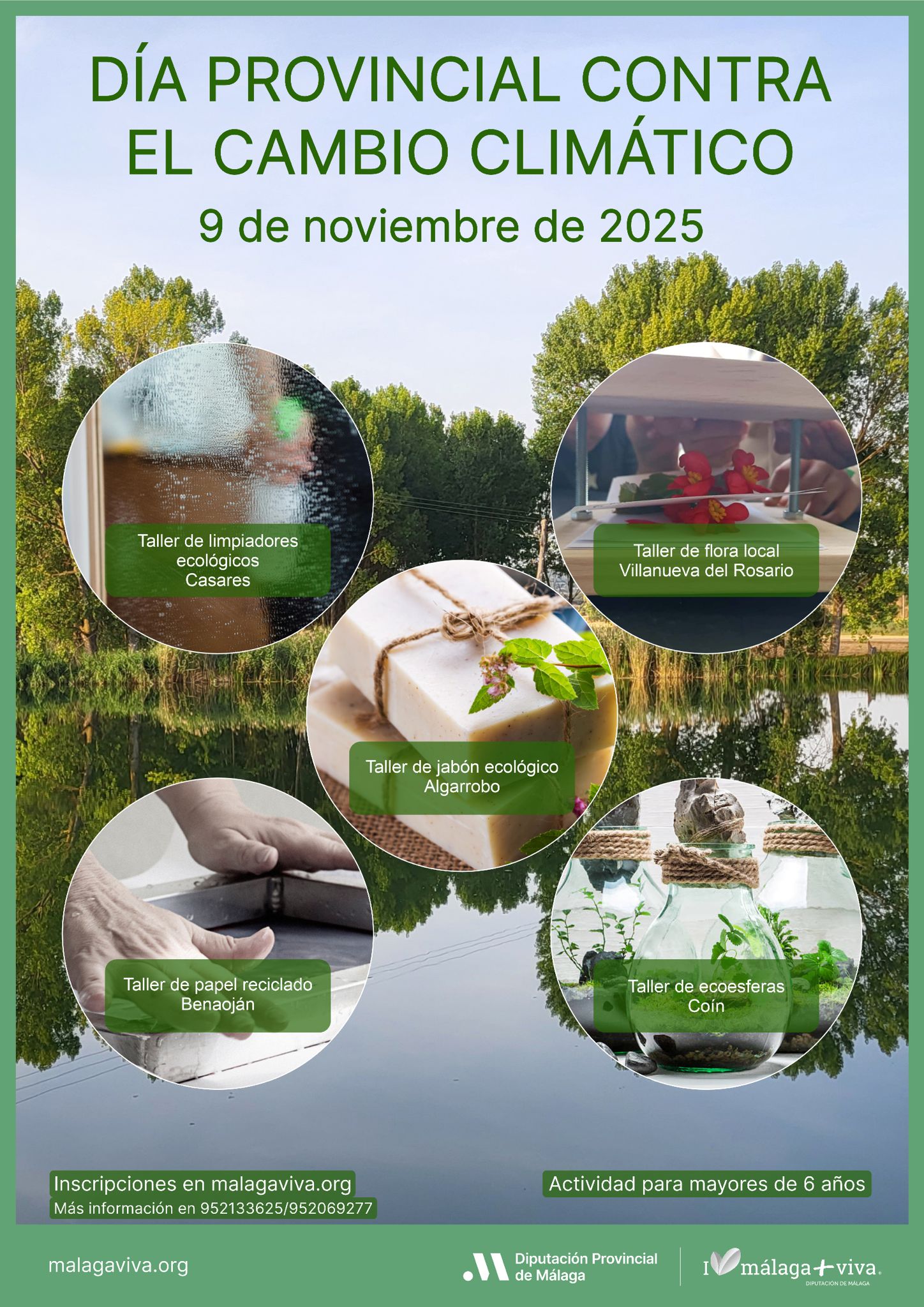 El próximo 9 de noviembre, la Diputación de Málaga celebrará el V Día Provincial contra el Cambio Climático con una jornada de ecotalleres en cinco municipios de la provincia. Más de medio millar de personas participarán en estas actividades del programa Málaga Viva, que buscan fomentar hábitos sostenibles y la convivencia entre vecinos de distintas comarcas.