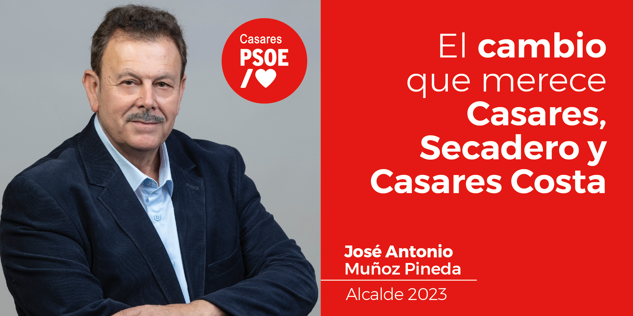 El PSOE de Casares ha confirmado que José Antonio Muñoz Pineda, actual concejal y portavoz del grupo municipal socialista en el ayuntamiento, será el candidato a la alcaldía de Casares el próximo 28 de mayo de 2023. Bajo el lema “el cambio que merece Casares, Secadero y Casares Costa”, Muñoz Pineda quiere “liderar un proyecto con nuevas ideas y personas que tiene como objetivo cambiar la actual manera en la que se está gobernando Casares.