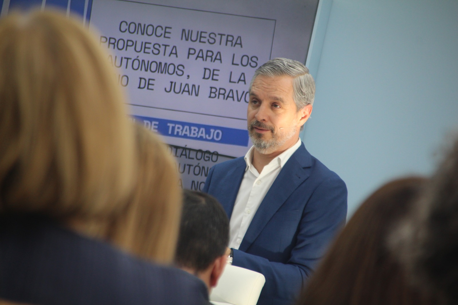 El vicesecretario de Hacienda, Vivienda e Infraestructuras del PP, Juan Bravo, ha presentado hoy en Málaga el “contrato” que la formación ofrece a los autónomos, basada en menos impuestos y trabas burocráticas, más facilidades para crecer, mayor cobertura social y mejores condiciones laborales.