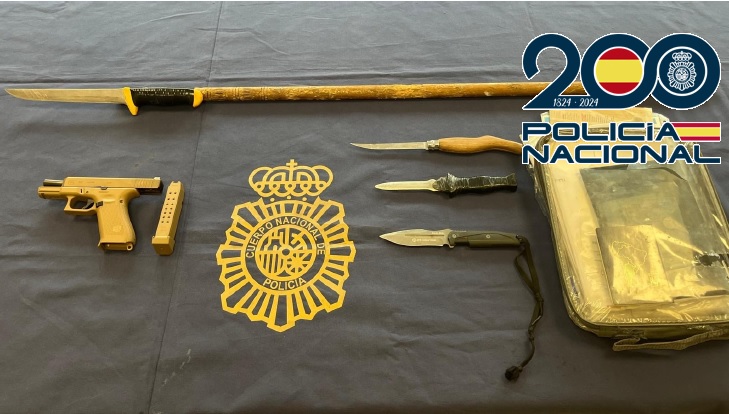 En un registro en la vivienda, los investigadores intervinieron una pistola real y su cargador; una lanza fabricada artesanalmente; una navaja de grandes dimensiones; y dos puñales.