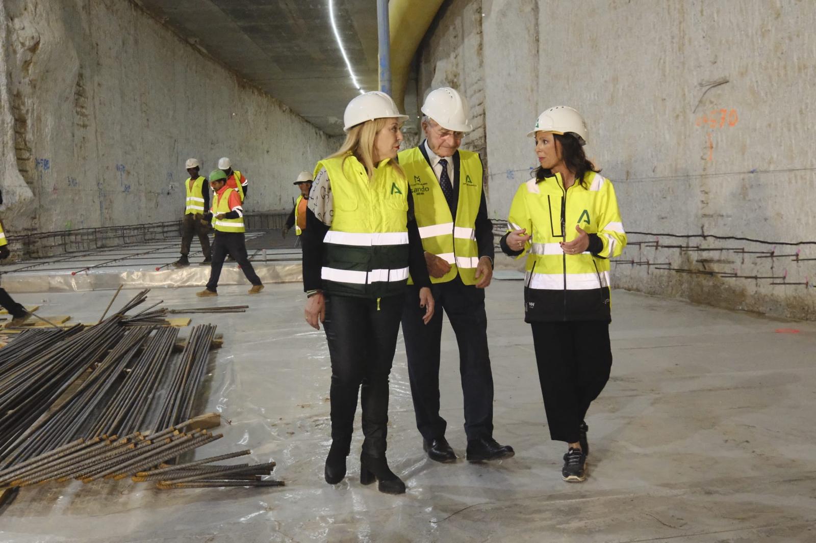 La consejera de Fomento, Articulación del Territorio y Vivienda, Rocío Díaz, y la consejera de Economía, Hacienda y Fondos Europeos ha visitado junto al alcalde de Málaga, Francisco de la Torre, las obras del primer tramo de la prolongación del Metro de Málaga al hospital Virgen de la Esperanza, una actuación que se centra en estos momentos en la ejecución del túnel bajo calle Hilera, desde el extremo de la intersección con calle Santa Elena hacia Armengual de la Mota.