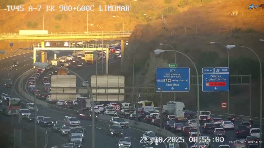 La jornada de este jueves, 23 de octubre, ha comenzado con relevantes problemas de tráfico en la provincia de Málaga. Según fuentes de la DGT, un vehículo averiado ha provocado fuertes retenciones en la A-7 a la altura del entorno de Ciudad Jardín, lo que ha provocado alrededor de 9 kilómetros de retenciones en hora punta de este jueves.