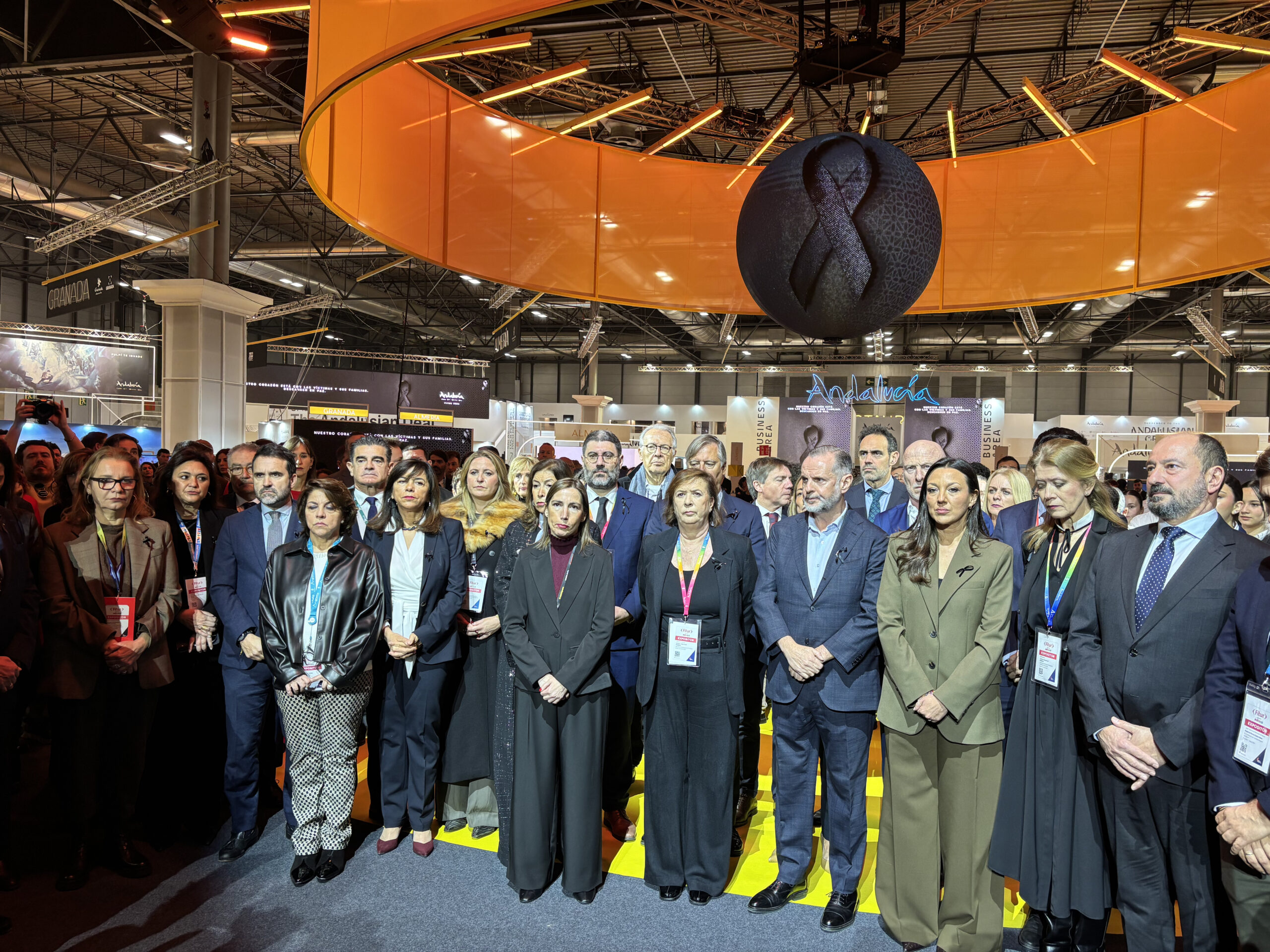La Feria Internacional de Turismo (Fitur) arrancaba este miércoles, 21 de enero, con un minuto de silencio por las víctimas del accidente ferroviario de Adamuz (Córdoba). Un momento muy emotivo que se ha seguido especialmente en el pabellón 5 de Ifema, el de Andalucía, donde ha sonado una pieza musical interpretada al violonchelo. Coincidiendo con el segundo día de luto oficial nacional, las bandas del recinto han ondeado a media asta.