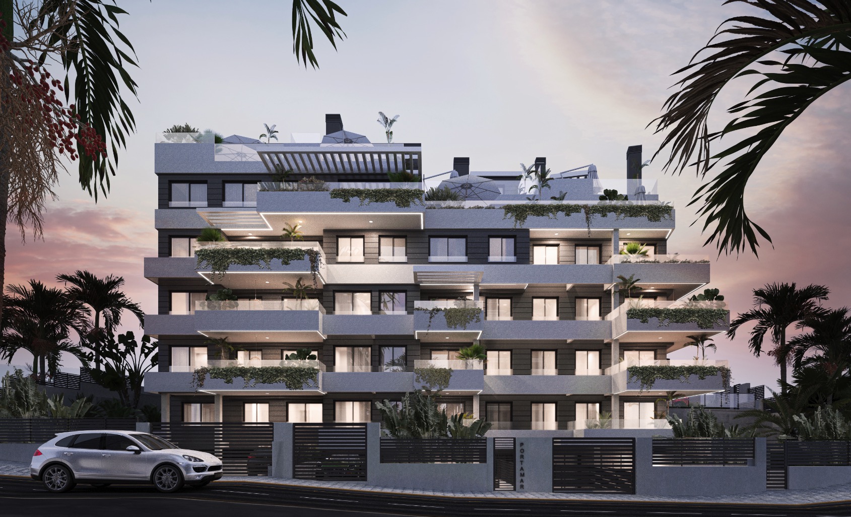 Ubicada a 200 metros de la playa y a 10 minutos del centro histórico, esta promoción ofrece 18 viviendas de lujo en cinco edificaciones (una rehabilitada y otra de nueva planta). Tipologías de 1 a 4 dormitorios, dos piscinas panorámicas, rooftop, gimnasio, zona chill-out y aparcamiento con carga eléctrica. Precios desde 895.000 €, entrega prevista para el primer trimestre de 2027.