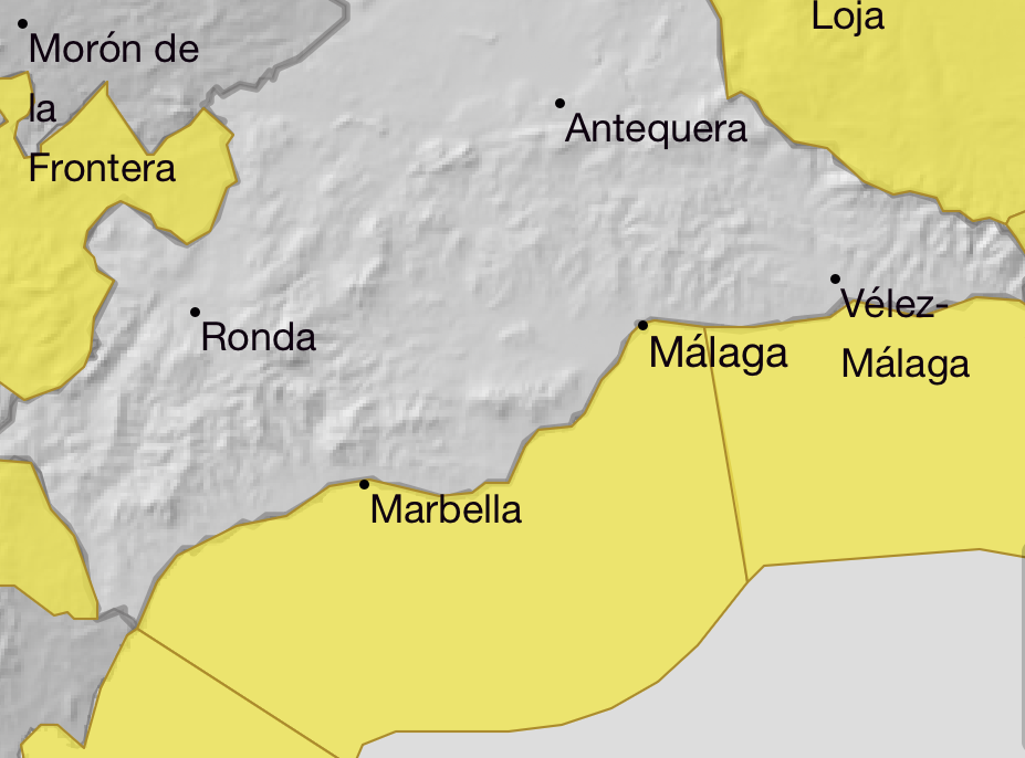 La Agencia Estatal de Meteorología activa aviso amarillo en la provincia malagueña desde las 12:00 horas hasta las 23:59 horas