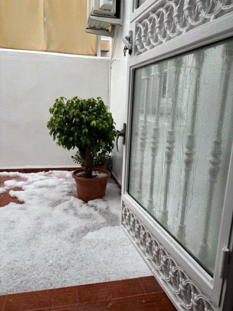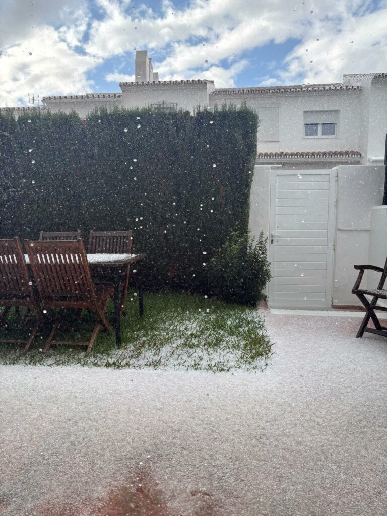 Es la imagen más navideña que posiblemente un pueblo de la costa de Málaga podrá ver. Una fuerte tormenta de lluvia y granizo teñía esta Nochebuena a varios municipios de la zona de la Axarquía, dejando estampas preciosas y no muy habituales en municipios como Rincón de la Victoria.