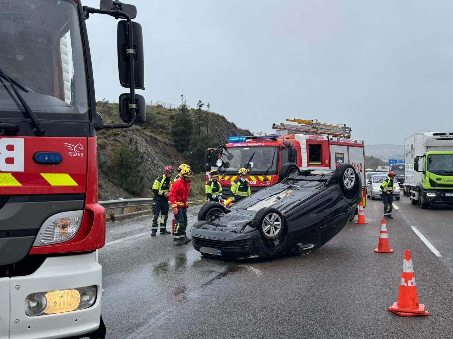 Vuelca un vehículo en la A-7 por Fuengirola: el conductor salió por su propio pie