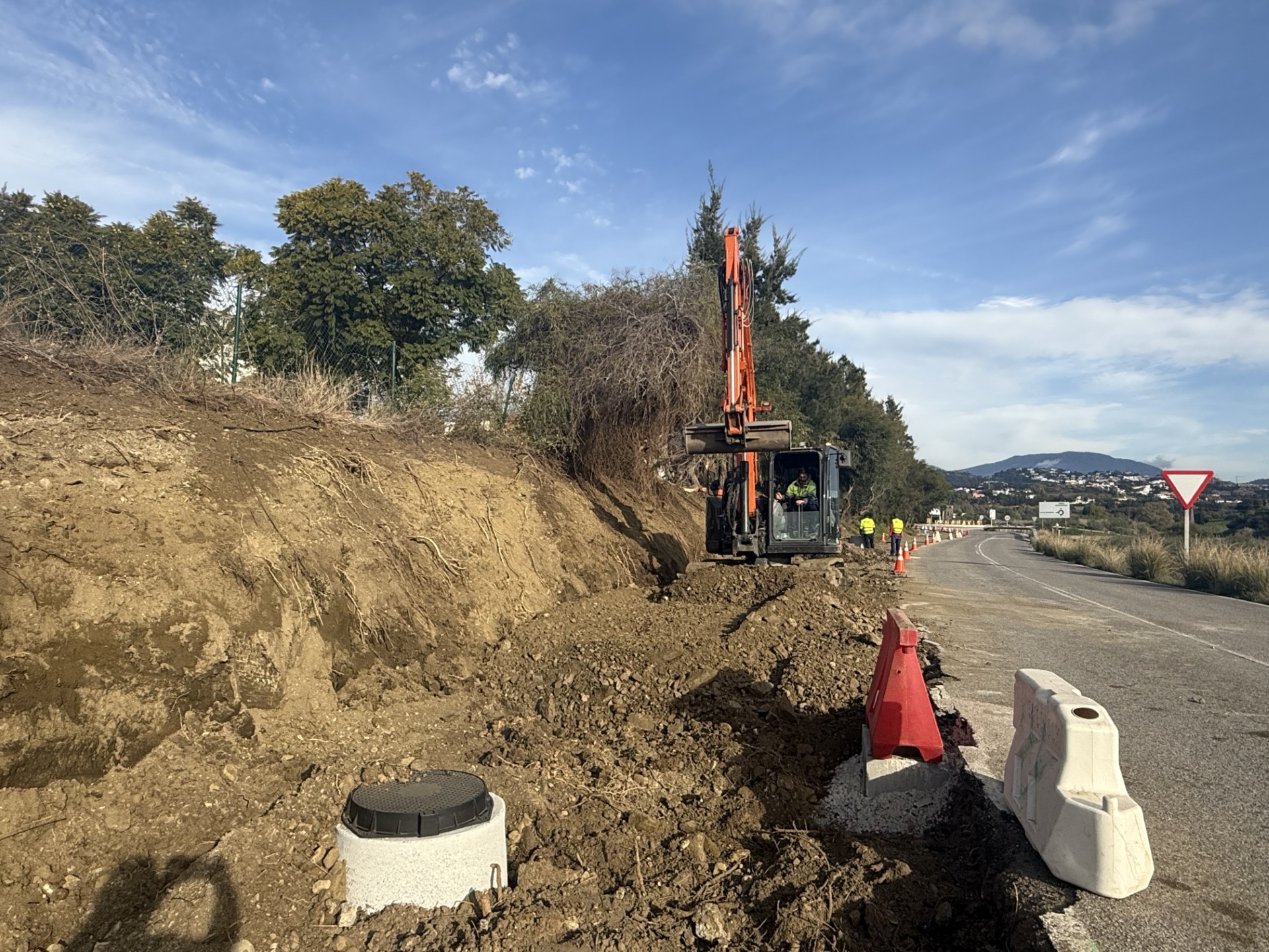 Avanzan a buen ritmo las obras para dotar de acerado y medidas de calmado de tráfico a la carretera de Benahavís