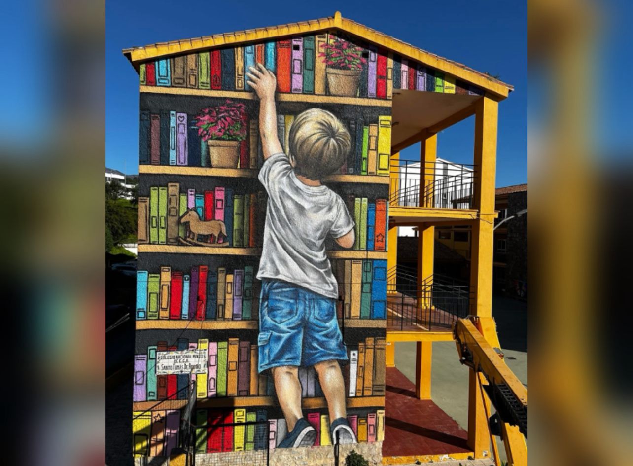 «Porque cuando un niño aprende, todo un pueblo avanza». José Enrique Ragel ya ha dejado su sello en uno de los colegios más emblemáticos de Estepona, el CEIP Santo Tomás de Aquino, tras finalizar un mural en una de las caras más visibles del centro, que se suma a la lista de murales que este artista ya reconocido por la Costa del Sol cuenta en su palmarés.
