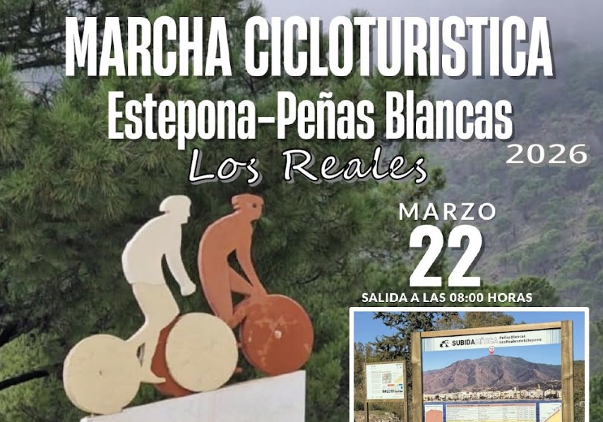 El Ayuntamiento de Estepona informa de los cortes del tráfico que se producirán el domingo, 22 de marzo, con motivo de la celebración de la Marcha Cicloturista Estepona-Peñas Blancas-Los Reales. Por tal motivo, desde las 07.50 a las 12.20 horas la carretera de subida a Sierra Bermeja, la MA 8301, permanecerá cerrada al tráfico, con el objetivo de garantizar la seguridad de los participantes.