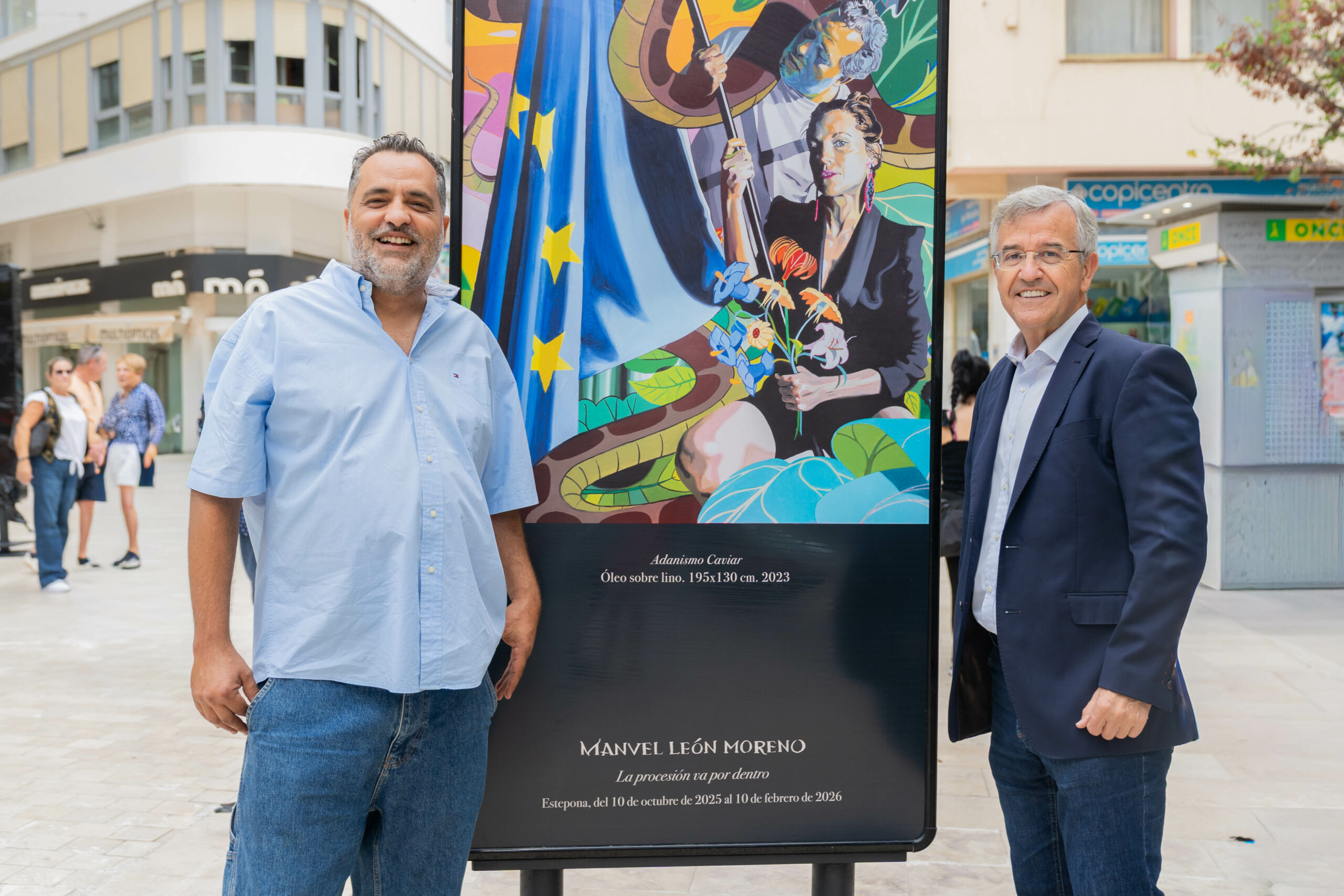 El artista llega a Estepona con la colorista muestra ‘La procesión va por dentro’,  compuesta de 17 tótems impresos con imágenes de su obra creativa; entre ellas, una creada especialmente para esta exposición.
