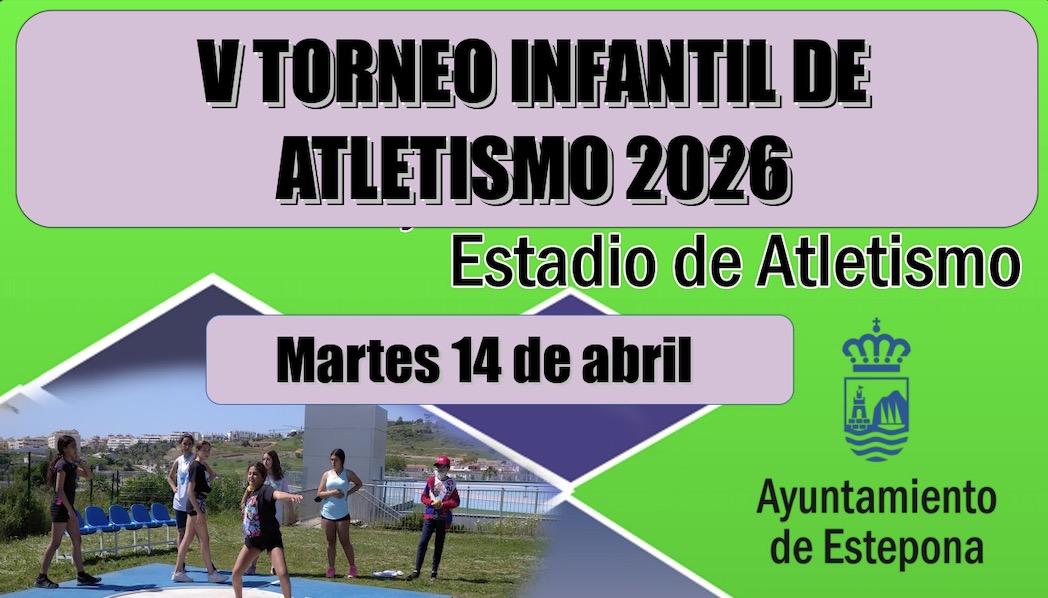 El Ayuntamiento de Estepona informa que el próximo martes 14 de abril se celebrará el ‘V Torneo Infantil de Atletismo 2026’, organizado por el Consistorio, con la colaboración del Club Atletismo de Estepona y los Centros Educativos de Secundaria locales.
