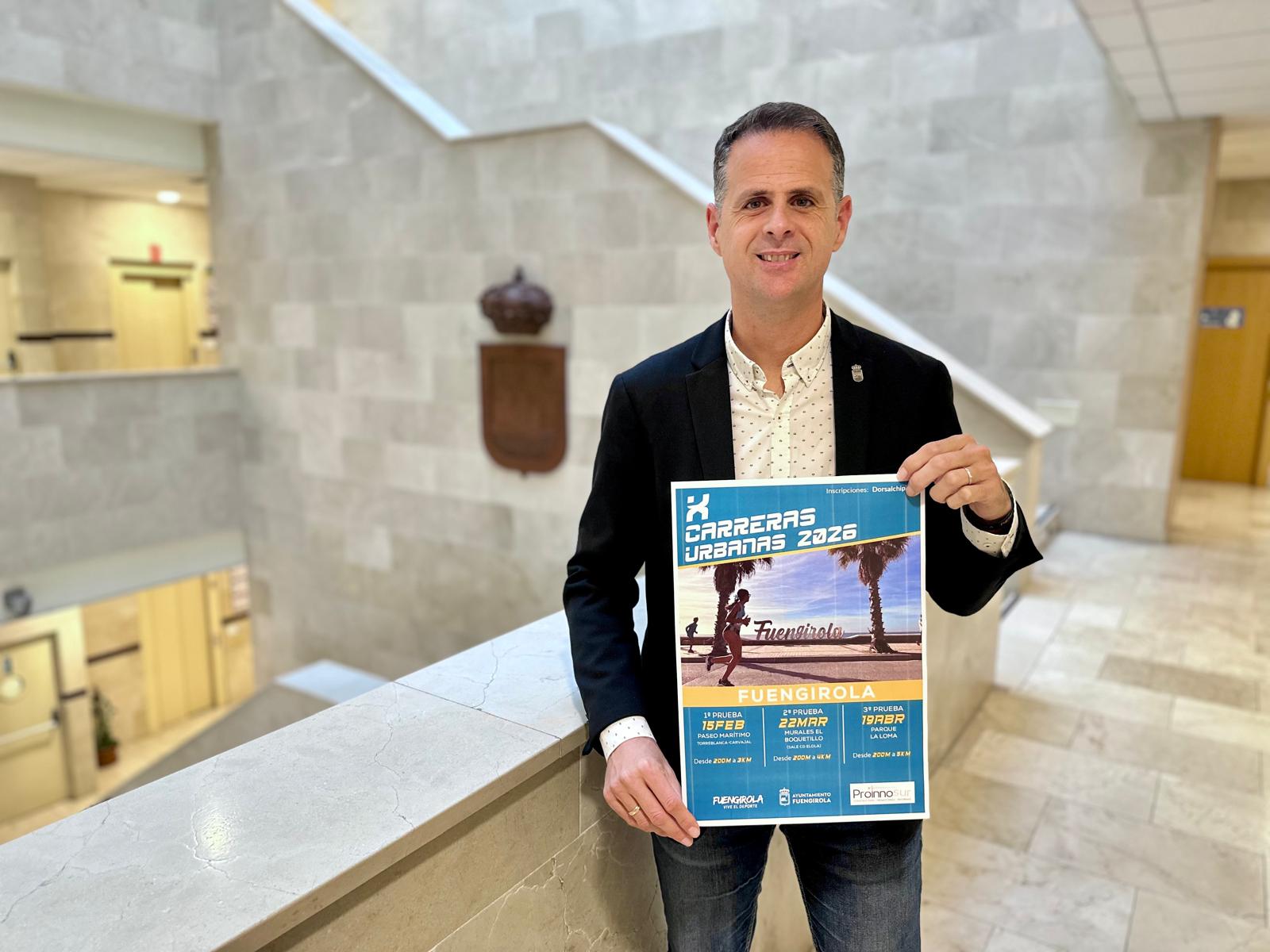 El X Circuito de Carreras Urbanas de Fuengirola contará en 2026 con tres pruebas que se disputarán los días 15 de febrero, 22 de marzo y 19 de abril, según ha anunciado el concejal de Deportes, Julio Rodríguez. Las inscripciones ya están abiertas a través de la plataforma dorsalchip.es.