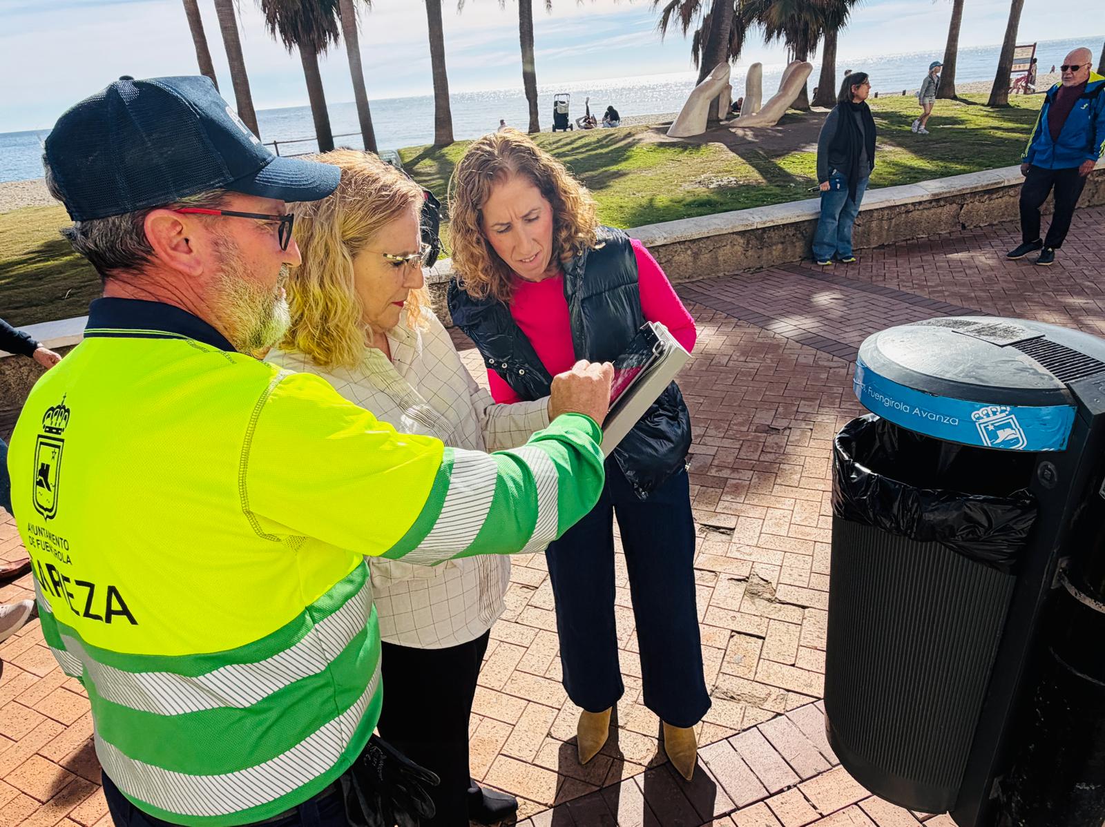 La alcaldesa de Fuengirola, Ana Mula, junto a la concejala de Limpieza, Carmen Díaz, ha presentado hoy en el paseo marítimo una nueva iniciativa basada en la implantación de tecnología NFC en las papeleras urbanas del municipio, enmarcada dentro de la inversión constante que realiza el Ayuntamiento para mejorar los servicios públicos.