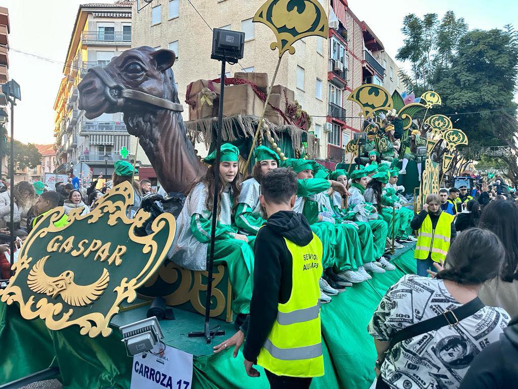 La Comitiva Real, una de las más extensas de Andalucía, está compuesta este año por 25 carrozas, 15 pasacalles, charangas, la agrupación musical San Lorenzo Mártir y la participación de más de 500 niños, así como 155 trabajadores y 150 voluntarios, además de los agentes de Policía Local y Policía Nacional que velarán por la seguridad durante todo el recorrido. Durante el trayecto se repartirán más de 30.000 kilos de caramelos, todos ellos sin gluten. Algunos con y otros sin azúcar.