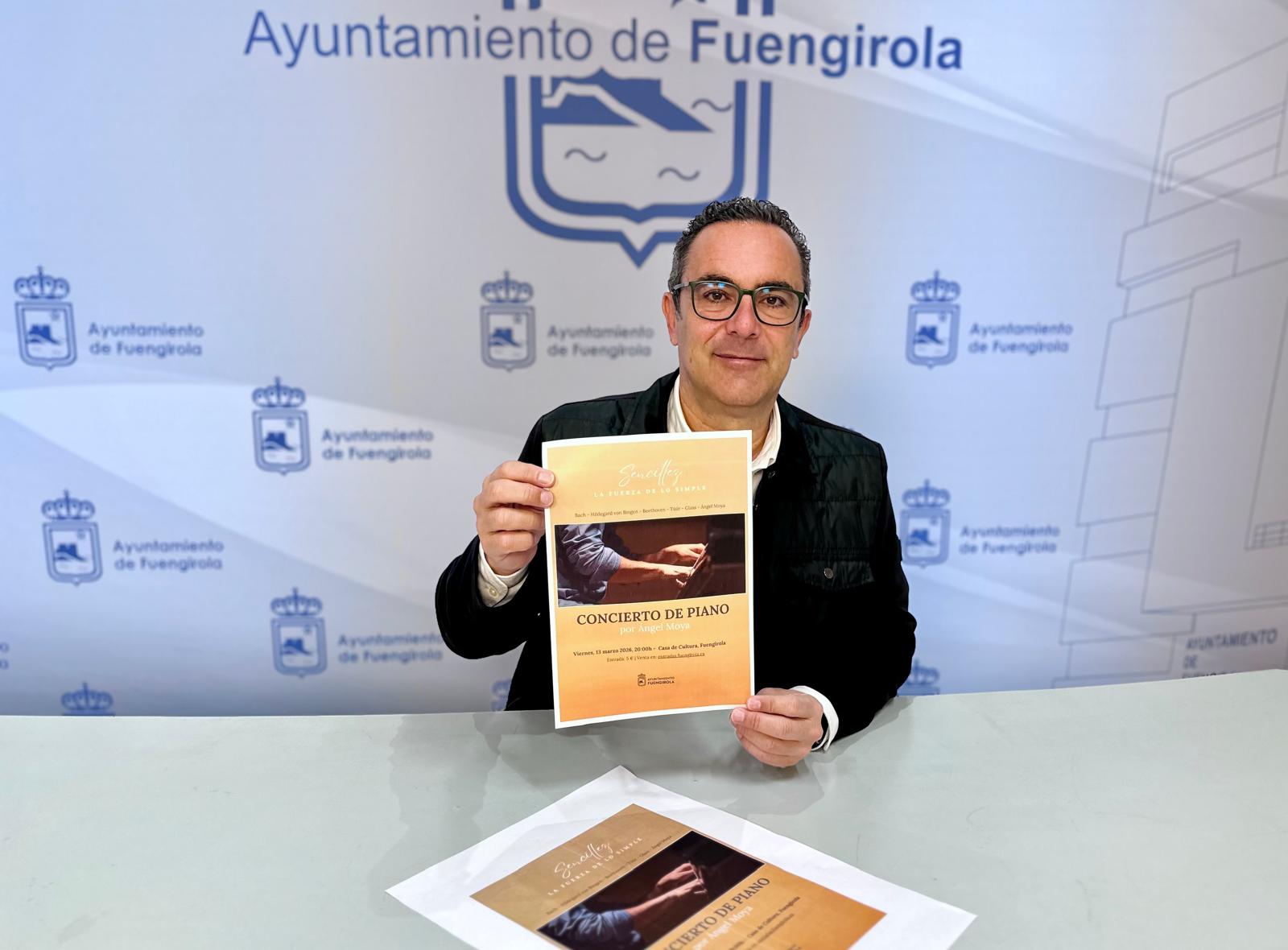 La Casa de la Cultura Manuel Delgado Perea de Fuengirola acogerá el próximo 13 de marzo el concierto de piano Sencillez. La fuerza de lo simple, que ofrecerá el pianista granadino Ángel Moya. Así lo ha anunciado el concejal de Cultura, Rodrigo Romero, quien ha indicado que el recital comenzará a las 20:00 horas y que las entradas ya están disponibles por un precio de 5 euros en la web https://entradas.fuengirola.es y en el punto de información del Centro Comercial Miramar, de lunes a viernes, en horario de 10:00 a 12:30 horas y de 15:00 a 18:00 horas.