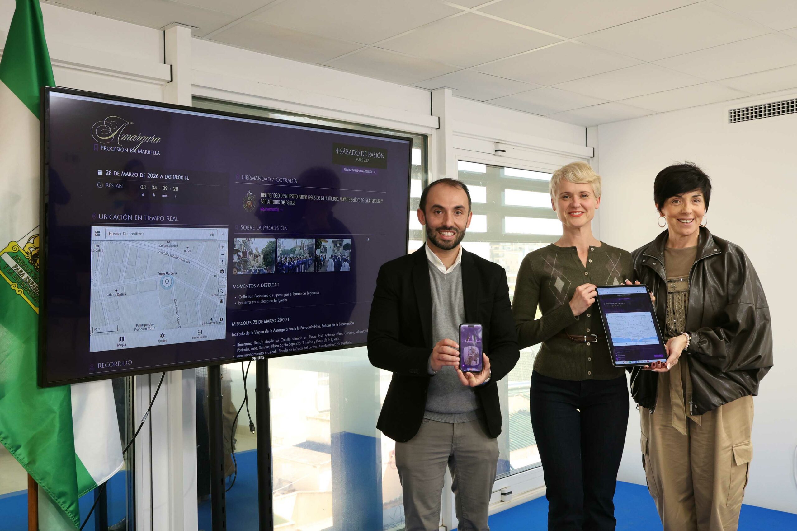 El Ayuntamiento de Marbella ha puesto en marcha la web actualizada de la Semana Santa 2026, https://semanasanta.marbella.es, con toda la información referente a las hermandades y cofradías del municipio disponible en cinco idiomas (inglés, francés, alemán, italiano y portugués), y con el seguimiento en tiempo real de las procesiones como principal novedad, ya que la plataforma incorpora un sistema de geolocalización en tiempo real mediante tecnología GPS. El concejal de Innovación, Enrique Rodríguez, ha resaltado que “este servicio estará operativo durante toda la festividad, incluido el Jueves Santo, jornada en la que coinciden hasta cuatro procesiones de forma simultánea”. Además, ha subrayado que “se trata de una herramienta consolidada que vuelve a situarse como referente informativo y turístico de la ciudad durante estas fechas tan señaladas”.