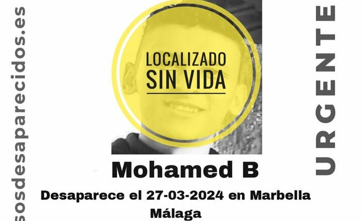 El 27 de marzo de 2024 la Asociación SOS Desaparecidos activaba la búsqueda de Mohamed B, un joven de que había desaparecido en Marbella. Más de un año después, la noticia ha finalizado con el peor final posible: el cuerpo sin vida de Mohamed ha sido hallado este martes.
