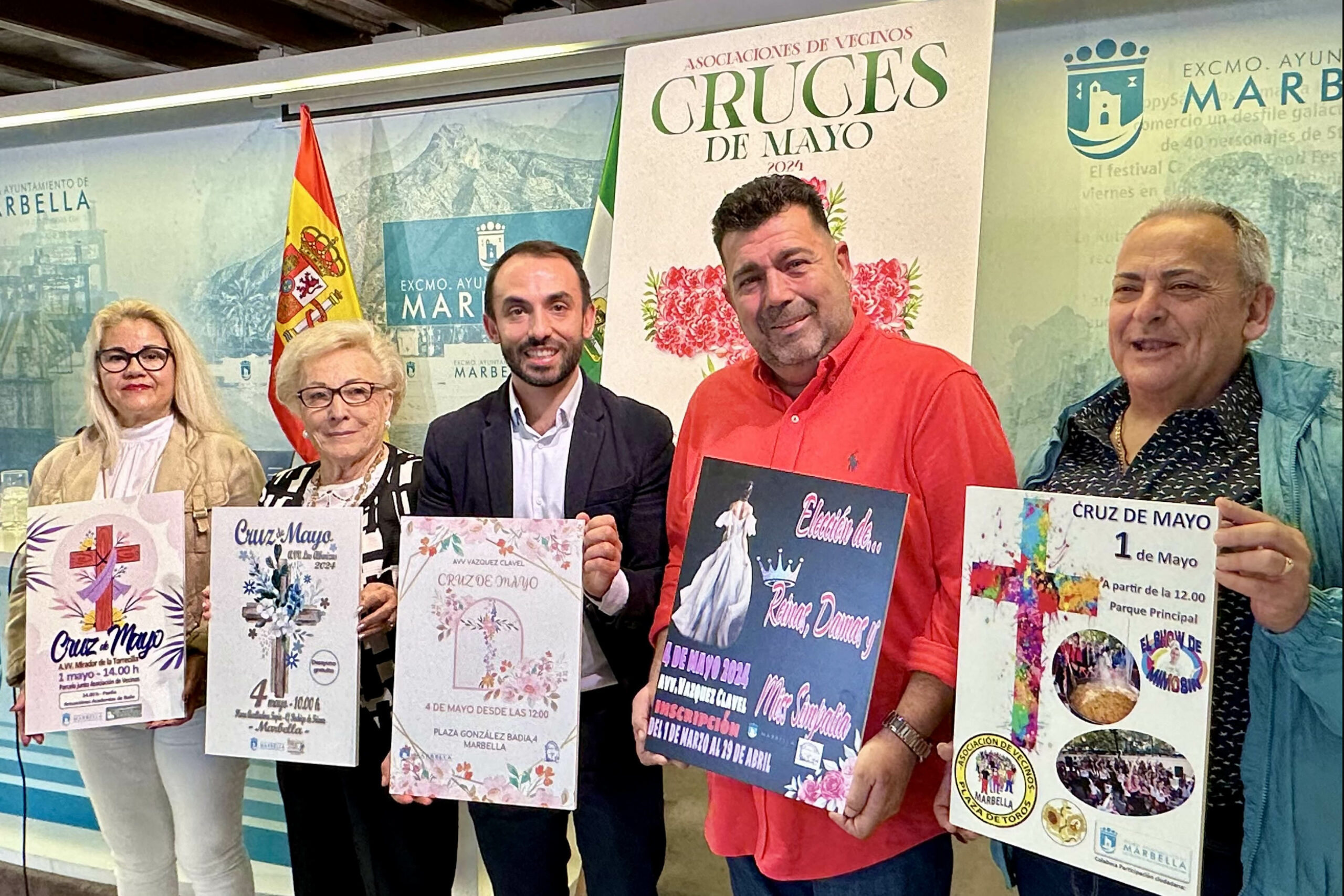Marbella celebrará las Cruces de Mayo con actividades impulsadas por las asociaciones de vecinos en distintas barriadas del municipio. El concejal de Participación Ciudadana, Enrique Rodríguez, ha respaldado hoy los eventos, que tendrán lugar los días 1 y 4 de mayo, y ha agradecido a los colectivos “su compromiso y dedicación para preservar las tradiciones”. El edil, que ha estado acompañado de los representantes de las asociaciones de vecinos de Plaza de Toros, Las Albarizas y Vázquez Clavel, Rafael Jiménez, Josefa Carrasco, y Francisco González, respectivamente, ha subrayado que esta efeméride “no es solo adornos florales, sino una expresión arraigada de nuestra cultura”. “Los residentes embellecen nuestras calle y también fortalecen sus lazos como comunidad”, ha señalado, al tiempo que ha explicado que la programación incluye “opciones para todos los gustos y edades”.