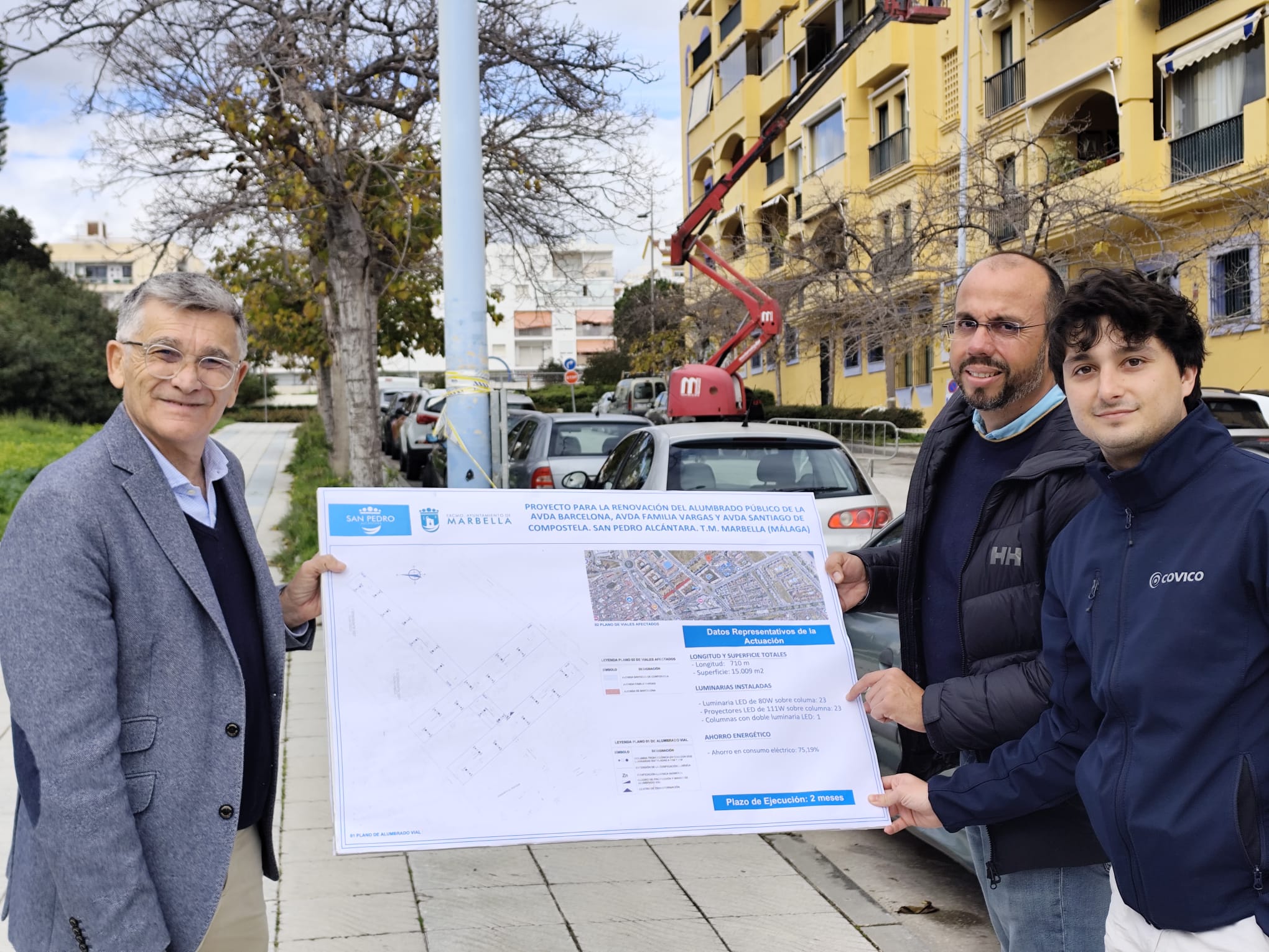 En total, de las 46 nuevas luminarias, 23 se colocarán a cuatro metros de altura para la iluminación de acerados y zonas peatonales y otras 23 a once metros de altura, destinadas al alumbrado del tráfico rodado y las áreas de aparcamiento. Además, se ejecutarán nuevas canalizaciones y se instalará una columna adicional con doble luminaria en la avenida de Barcelona “para mejorar la uniformidad lumínica en un punto donde hasta ahora no existía”. Por último, el concejal ha avanzado que el Ayuntamiento continuará desarrollando este tipo de proyectos en San Pedro Alcántara, con nuevas actuaciones previstas en la calle San Javier y en otros puntos del distrito, “con el objetivo de seguir modernizando el alumbrado público y avanzar en un modelo más eficiente y sostenible”.