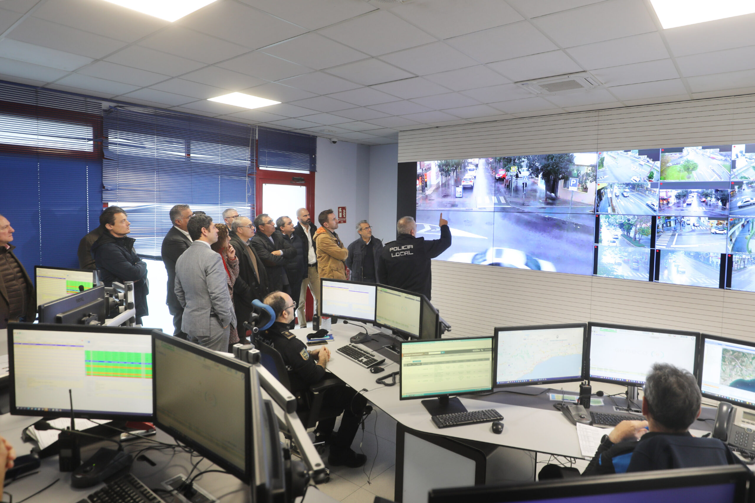 Díaz ha acompañado a los profesionales portugueses en el recorrido por la Sala de Videovigilancia de la Jefatura de la Policía Local, donde han conocido de primera mano el funcionamiento de un dispositivo que, como ha resaltado el edil, “es emblemático en todo el territorio nacional y está siendo referente para el desarrollo de otros sistemas similares en distintas ciudades, tanto de España como del resto de Europa”.