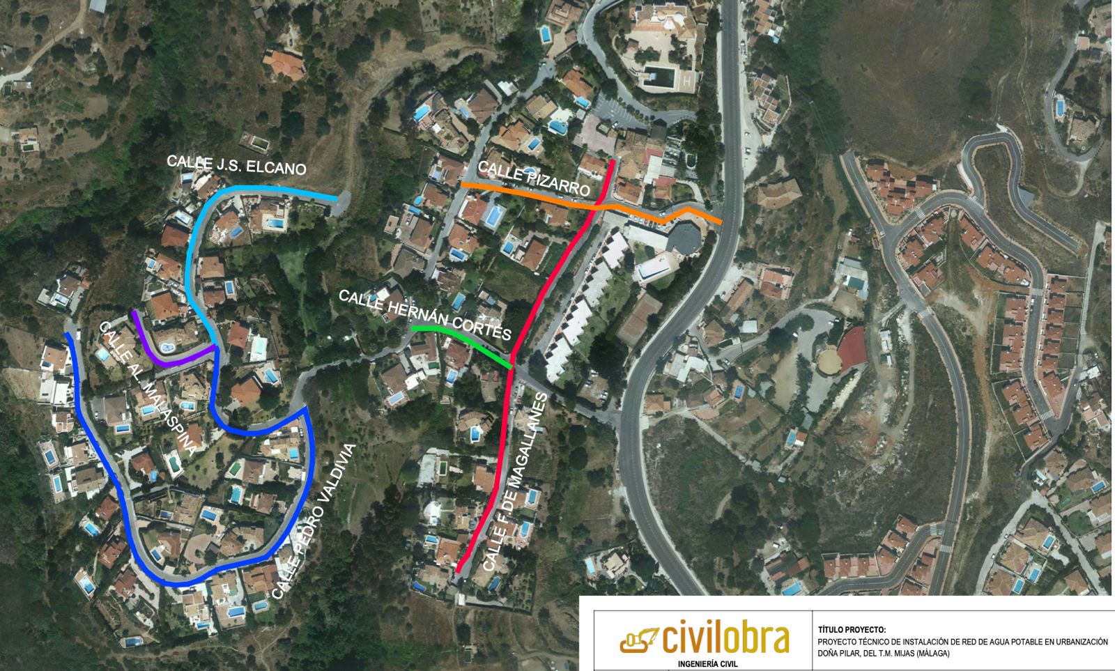 En concreto, en la urbanización Doña Pilar, el ámbito de actuación de las obras se centra en las calles Hernán Cortés, Alejandro Malaspina, Francisco Pizarro, Fernando de Magallanes, Juan Sebastián Elcano y Pedro Valdivia. Debido a la antigüedad de la red actual, y con el objetivo de minimizar las averías y evitar pérdidas, se ejecutará una nueva red de distribución de fundición dúctil de 100 milímetros de diámetro.