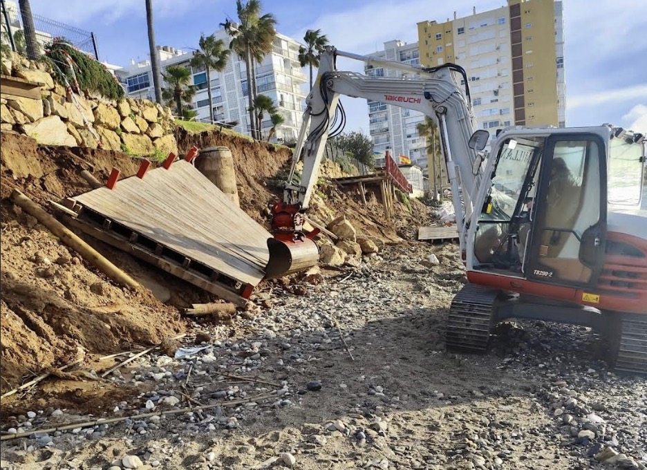 El Ayuntamiento de Mijas ya se ha puesto manos a la obra para iniciar la reconstrucción del tramo de la Senda Litoral afectado por los recientes temporales marítimos. Los operarios municipales trabajan en el obligatorio desmontaje de la pasarela en la zona de El Capricho, que fue derribado por la fuerza de las olas, y al mismo tiempo la delegación de Infraestructuras prepara la declaración de emergencia para acelerar los trabajos todo lo posible.