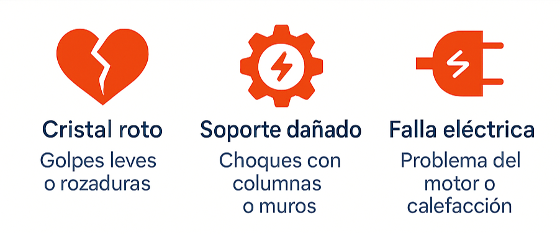 • Fallo del motor eléctrico o calefacción: frecuente en espejos modernos con ajuste automático.