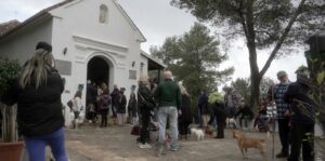 Una vez finalizada la eucaristía, el párroco sale a la puerta de la ermita y comienza el rito más esperado: la bendición de los animales. Perros nerviosos, gatos acomodados en brazos, aves que cantan desde jaulas pequeñas, incluso alguna gallina. Lo que antaño eran mulos, burros y ganado hoy se ha transformado en mascotas queridas que forman parte de la vida familiar.