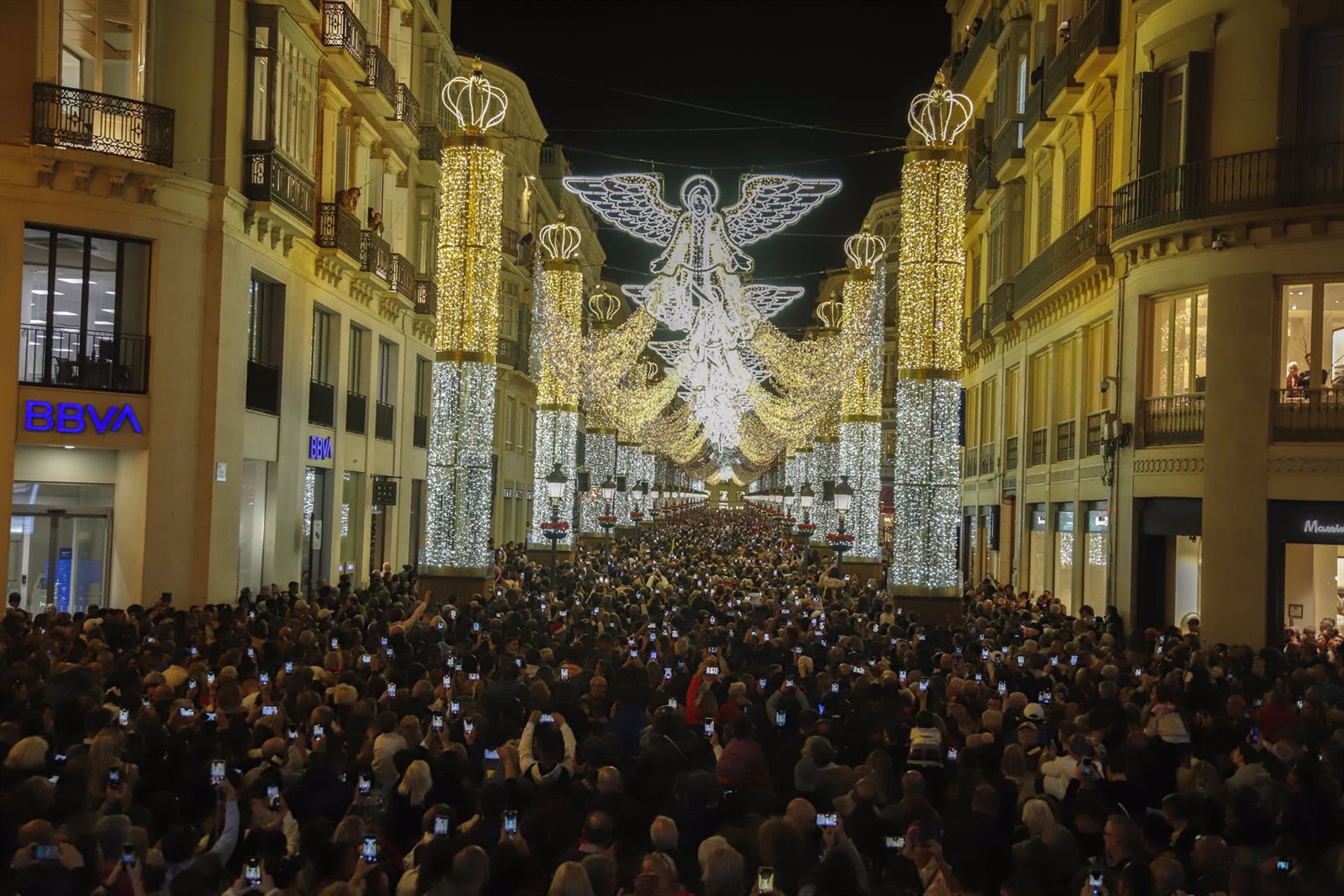 Por su parte, esta Navidad calle Larios vuelve a contar con el espectáculo ‘Ángeles celestiales’. Se trata de 16 ángeles de cuatro metros de altura que se sustentan sobre 32 columnas laterales. De los ángeles cuelgan unas colas de 12 metros de largo.