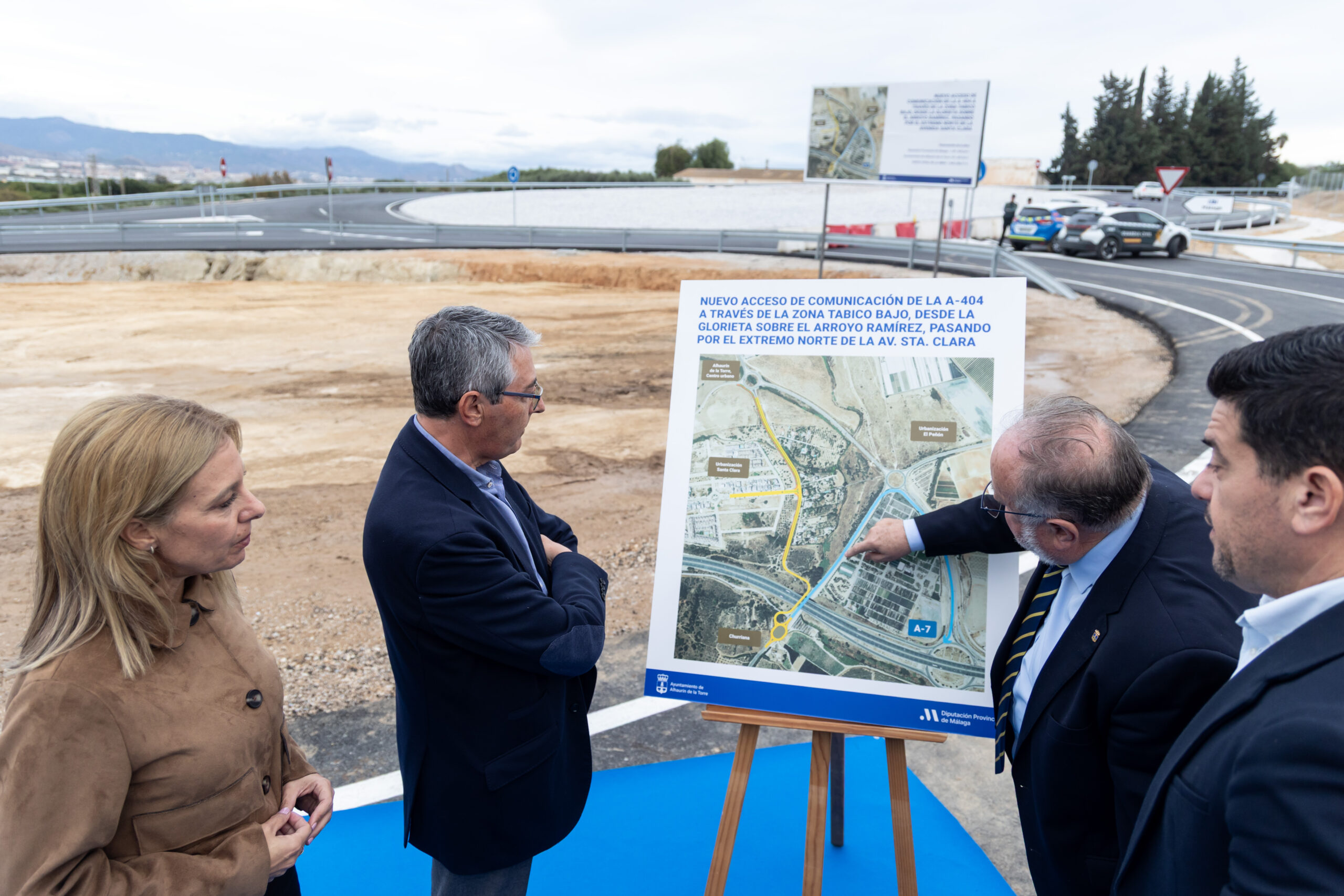 El presidente de la Diputación de Málaga, Francisco Salado, y el alcalde de Alhaurín de la Torre, Joaquín Villanova, han inaugurado hoy las obras de la nueva glorieta en la carretera A-404, que permite la conexión directa con la A-7 a través del vial ya ejecutado, en la zona de Tabico Bajo, desde el norte de la avenida de Santa Clara hasta la carretera de Churriana.