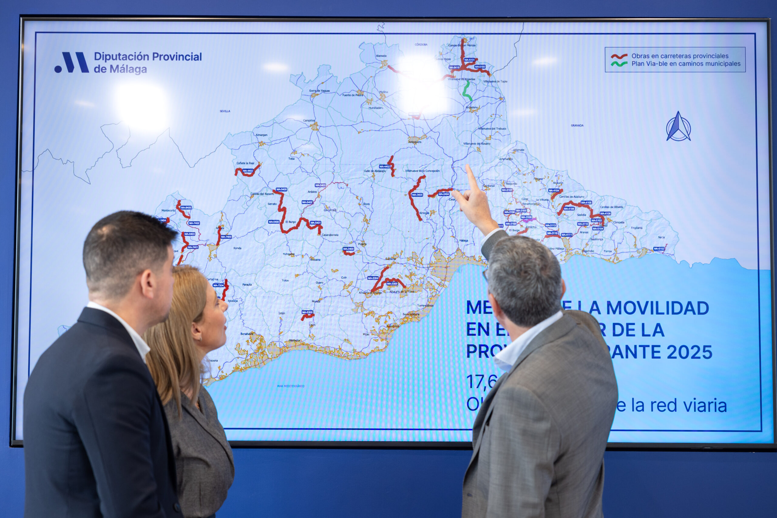 Igualmente, se han hecho actuaciones de mejora en la carretera MA-8405, de acceso a Cortijo Los Villalones (en la Serranía de Ronda); en la MA-4105, entre Canillas de Aceituno y Sedella; y en otras vías de acceso a municipios como Cañete la Real, Villanueva de Algaidas, Villanueva de Tapia, Cuevas de San Marcos.