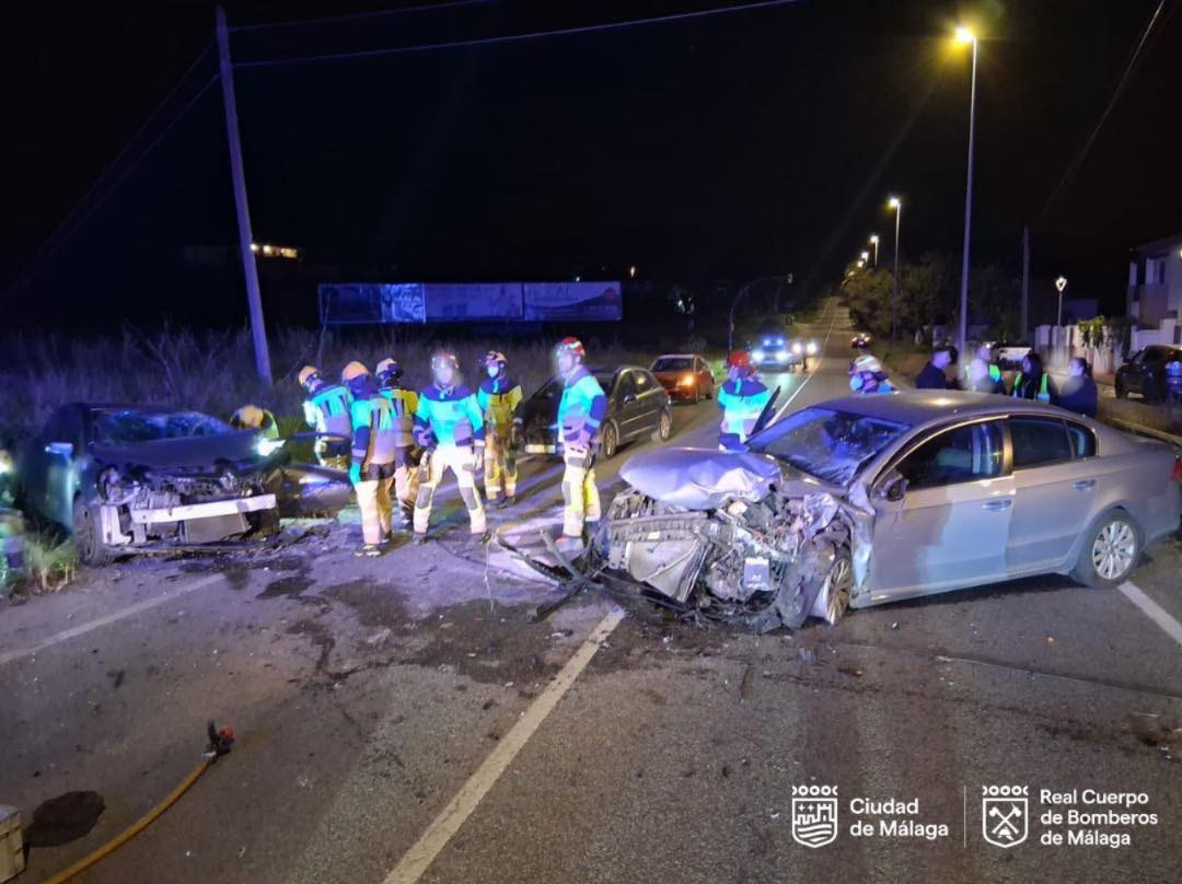 Cinco personas de entre 25 y 45 años de edad han resultado heridas en una colisión entre tres turismos registrada a última hora de este domingo 29 de marzo en el barrio de Churriana de Málaga capital, según informa el 112, perteneciente a la Agencia de Emergencias de Andalucía.