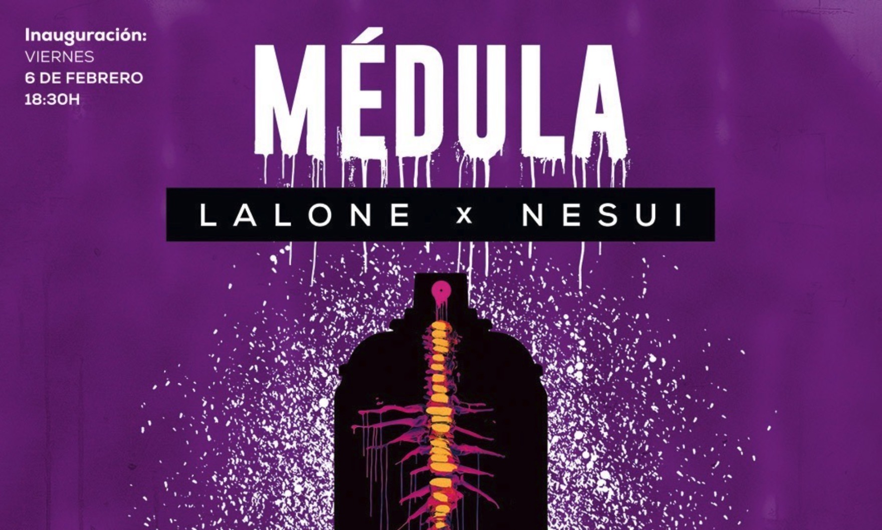 La sala de exposiciones Elena Laverón sita en el Centro Cultural Pablo Ruiz Picasso acoge hasta el 27 de marzo la exposición ‘Médula’, de los artistas urbanos Lalone y Nesui. La inauguración se llevará a cabo esta misma tarde a las 18:30 horas, con acceso libre y gratuito.